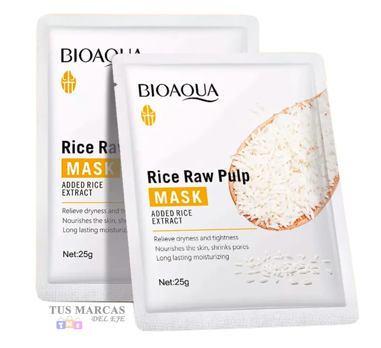 Mascarilla en velo de arroz, con altas bondades naturales y nutritivas. Su principio activo de arroz actúa como refrescante, limpia el rostro, aporta luminosidad, ejerce un efecto aclarante y suaviza tu piel. Ideal para usar en todo tipo de piel o en pieles afectadas por exposición al sol.